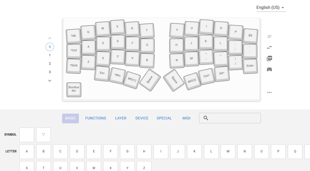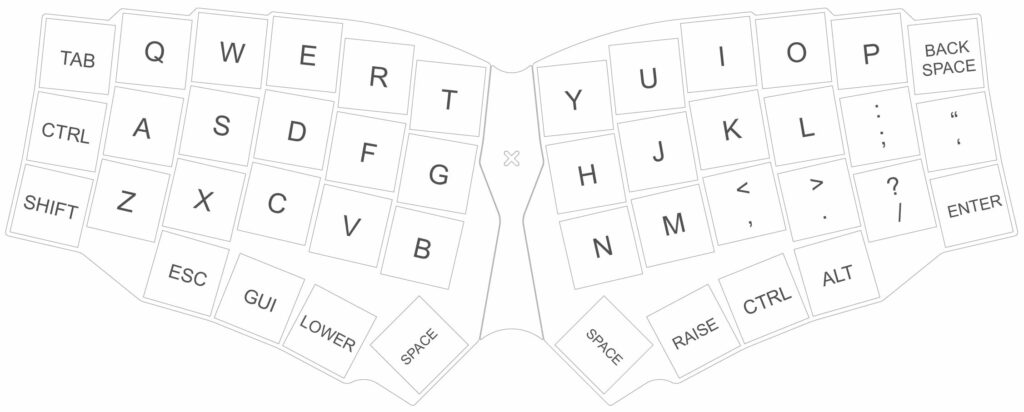 以下はデフォルトキーマップの定義です。KC_1, KC_2, KC_A, KC_B, …のキーコードを自分用に書き換えます。 キーコードはQMKのドキュメントを参照してください。